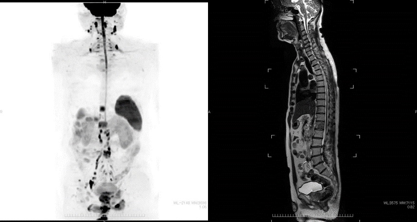 DWIBS法を使用した全身拡散強調MRIは、特に前立腺がんに多い骨転移に対して大変有効です。 そのため、前立腺生検により前立腺がんが確定した後の治療方針を決めるため転移の有無を確認するなどの目的にて行います。 また、前立腺がん治療後の再発や治療効果を評価するためにも撮影します。 前立腺癌以外にも、泌尿器がんの転移検索にも有効な検査です。