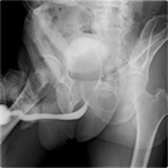 X線透視下にて尿道口より逆行性に造影剤を注入しながら撮影します。 尿道・膀胱・前立腺の形態が分かるため、尿道狭窄や前立腺肥大の診断に用いる検査です。