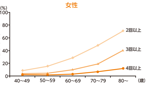 • 60歳以上の約半分の方が夜間頻尿2回以上で悩んでいる